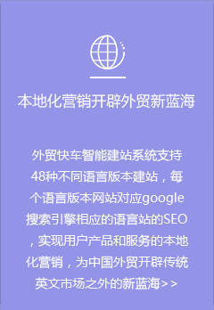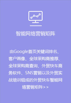 外貿(mào)快車(chē)是基于大數(shù)據(jù)和云計(jì)算的智能網(wǎng)絡(luò)營(yíng)銷(xiāo)系統(tǒng)平臺(tái)。依托五大功能系統(tǒng),幫助外貿(mào)企業(yè)智能創(chuàng)建多語(yǔ)種營(yíng)銷(xiāo)型網(wǎng)站和先進(jìn)的VR展示網(wǎng)站,通過(guò)采購(gòu)商數(shù)據(jù)挖掘,以及SEO、SNS等多渠道網(wǎng)絡(luò)營(yíng)銷(xiāo),實(shí)現(xiàn)全球推廣和新興市場(chǎng)開(kāi)發(fā)。