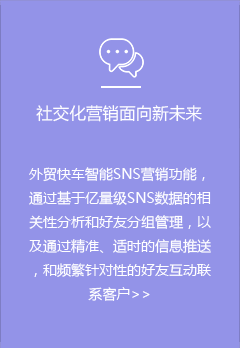 潛在采購(gòu)商和詢(xún)盤(pán)客戶,都進(jìn)行SNS深度挖掘了解企業(yè)情況。SNS可以讀取外貿(mào)快車(chē)網(wǎng)站上的產(chǎn)品進(jìn)行發(fā)布,發(fā)布后留下該產(chǎn)品的網(wǎng)址讓有興趣的用戶再點(diǎn)擊進(jìn)入外貿(mào)快車(chē)網(wǎng)站,為外貿(mào)快車(chē)網(wǎng)站帶去流量,再轉(zhuǎn)換成詢(xún)盤(pán)。同時(shí),SNS營(yíng)銷(xiāo)系統(tǒng)又可以進(jìn)行商業(yè)公司挖掘,挖掘出的商業(yè)公司與潛在采購(gòu)商進(jìn)行數(shù)據(jù)對(duì)比融合,更進(jìn)一步撐握企業(yè)情況,再進(jìn)行精準(zhǔn)聯(lián)系,獲得SNS詢(xún)盤(pán)。
